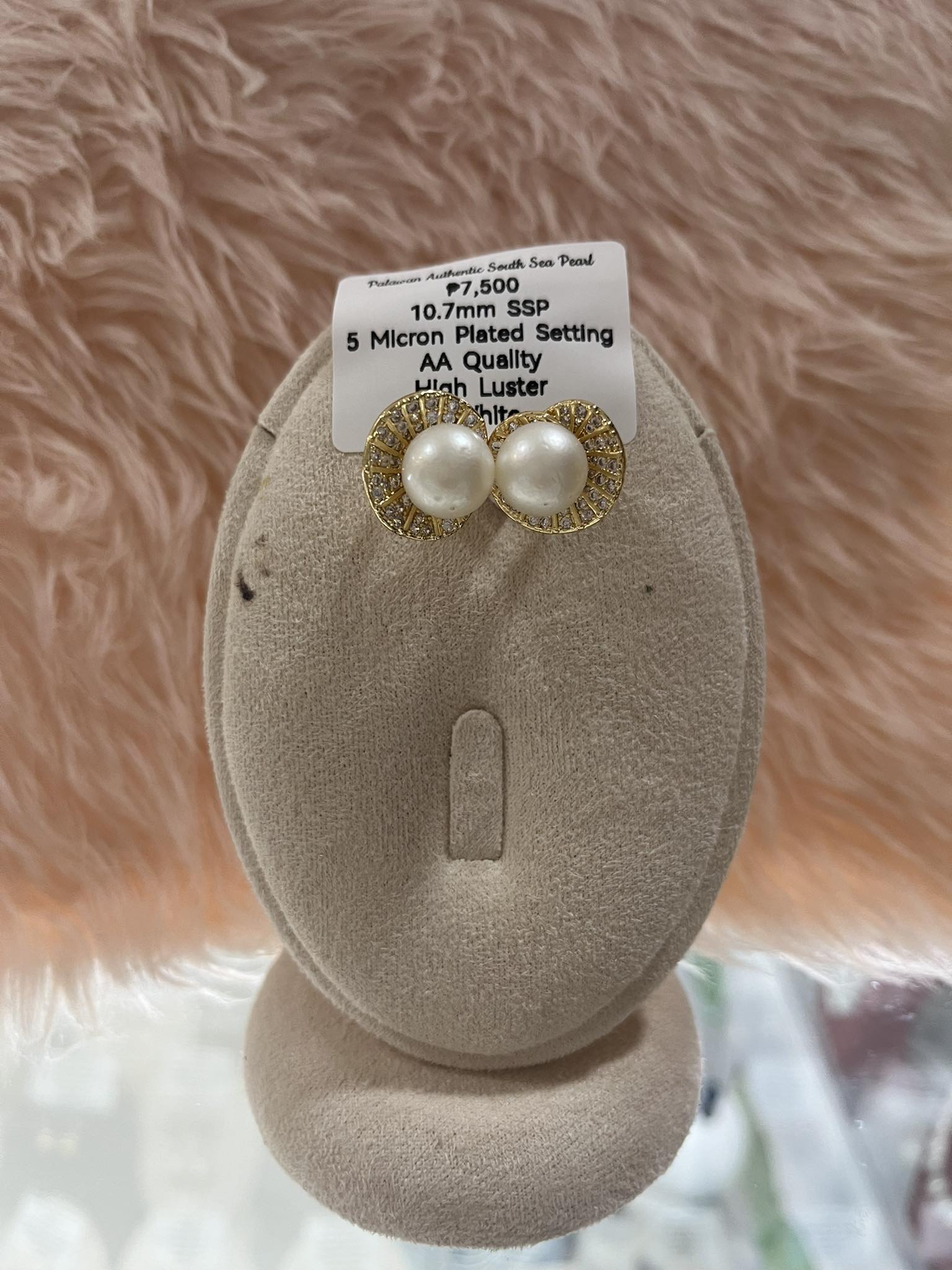 10.7mm Authentic White South Sea Pearl Set in 5 Micron Settings