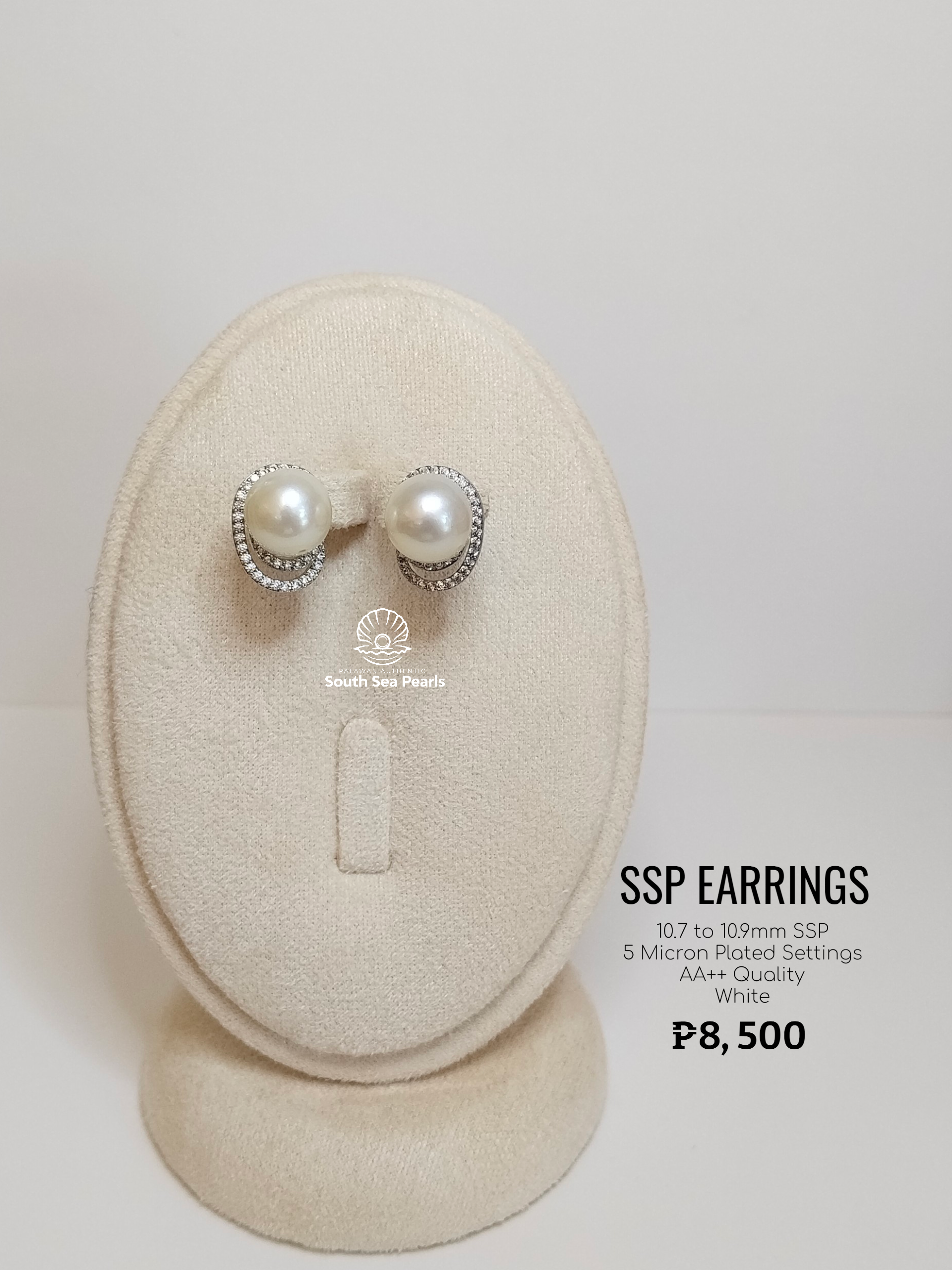10.7mm to 10.9mm Palawan Authentic White Color South Sea Pearl Earrings in 5 Micron Plated Settings