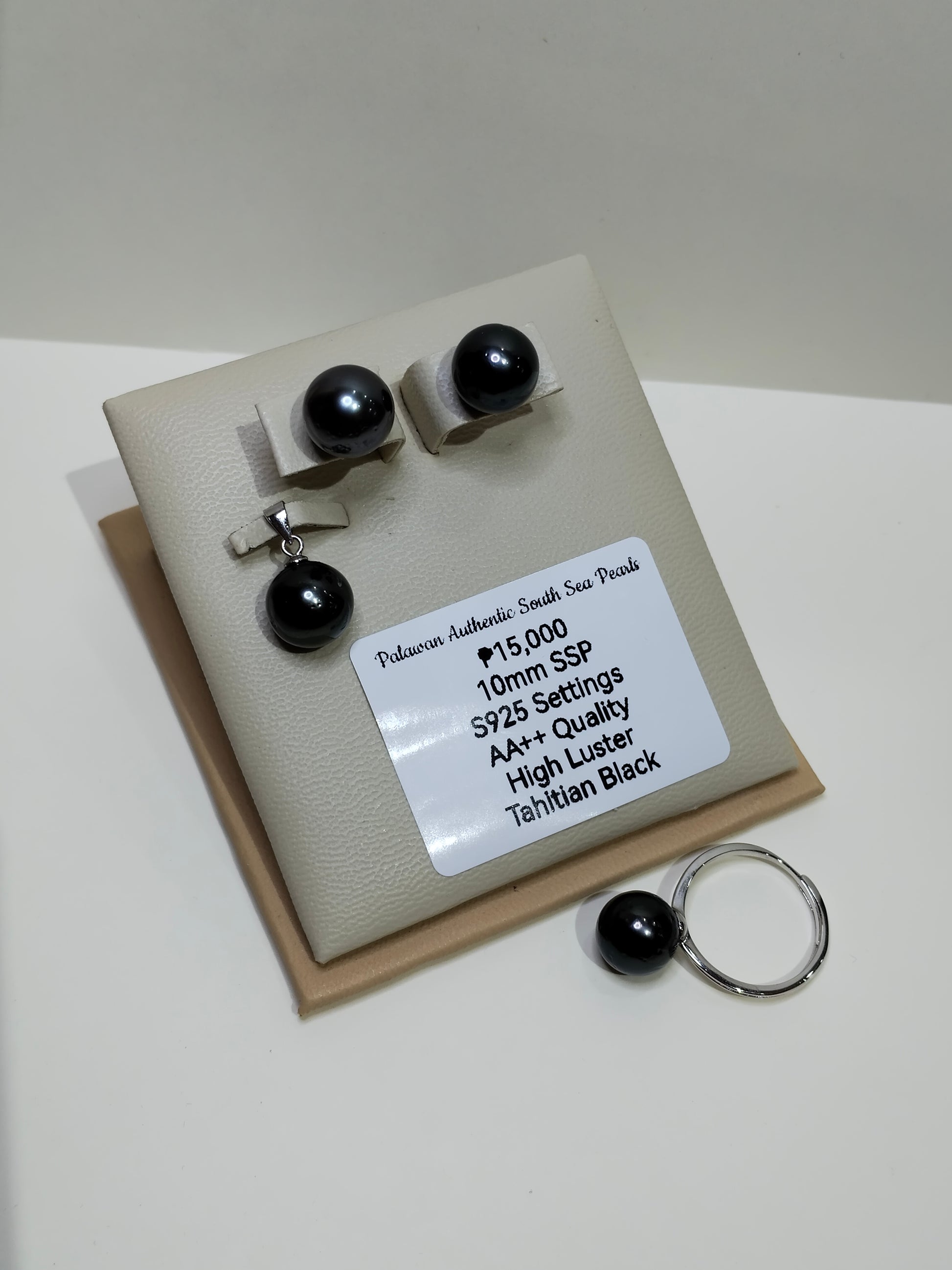 10mm Authentic Tahitian Black Color South Sea Pearls in S925 Settings