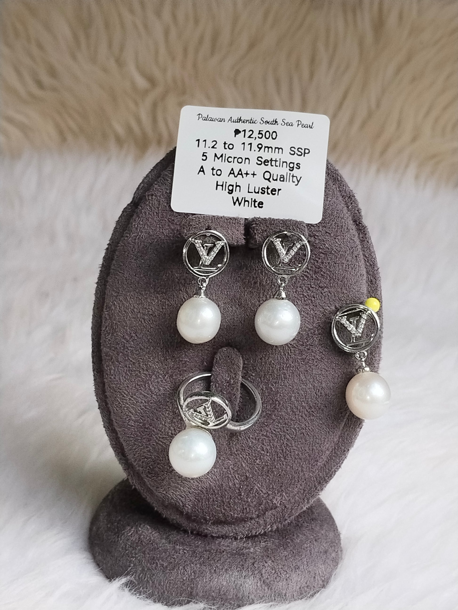 11.2 to 11.9mm Authentic White South Sea Pearl Set in 5 Micron Settings
