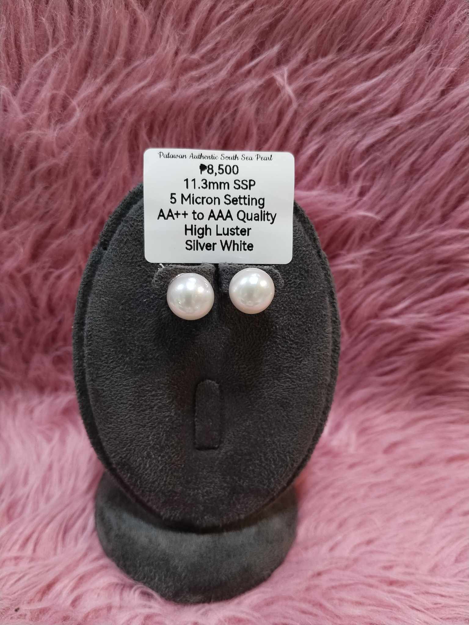 11.3mm Authentic Silver White South Sea Pearl Set in 5 Micron Settings