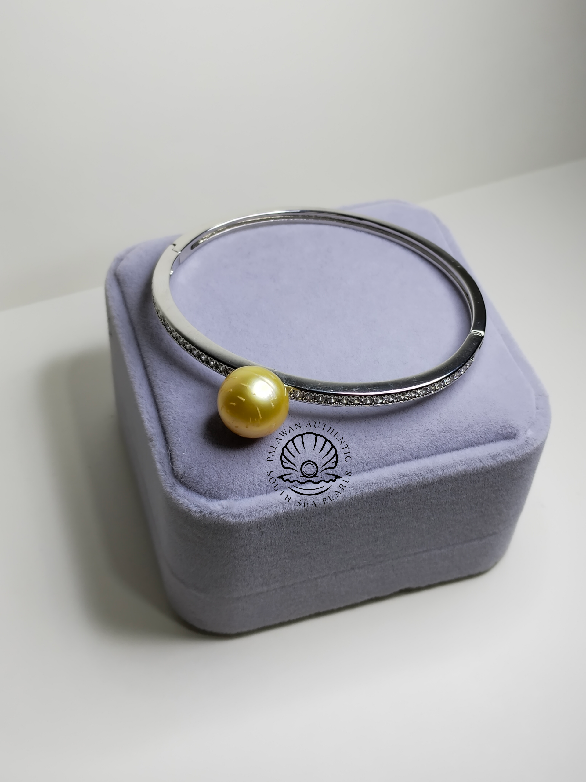 11.9mm Palawan Authentic Golden Color South Sea Pearl Bangle in 5 Micron Plated Settings