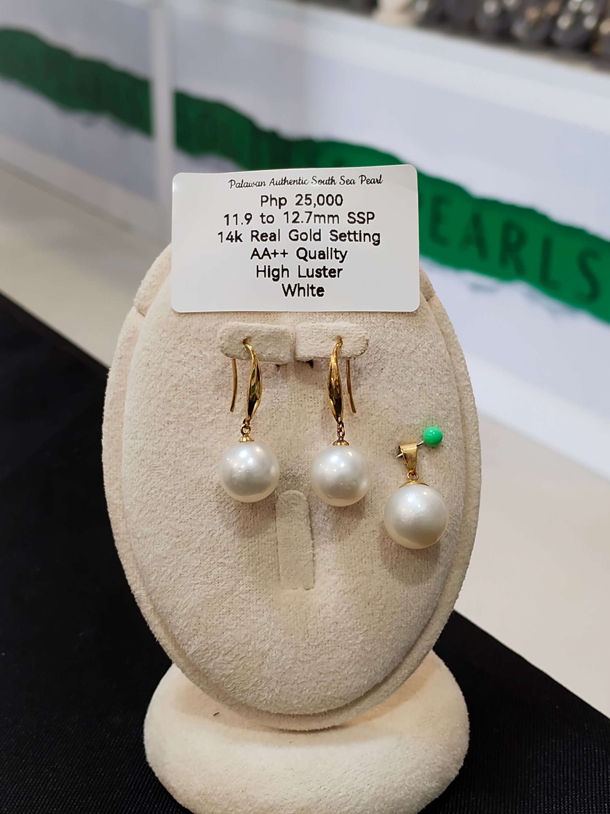 11.9mm to 12.7mm Authentic White South Sea Pearl Sets in 14k Real Gold Settings