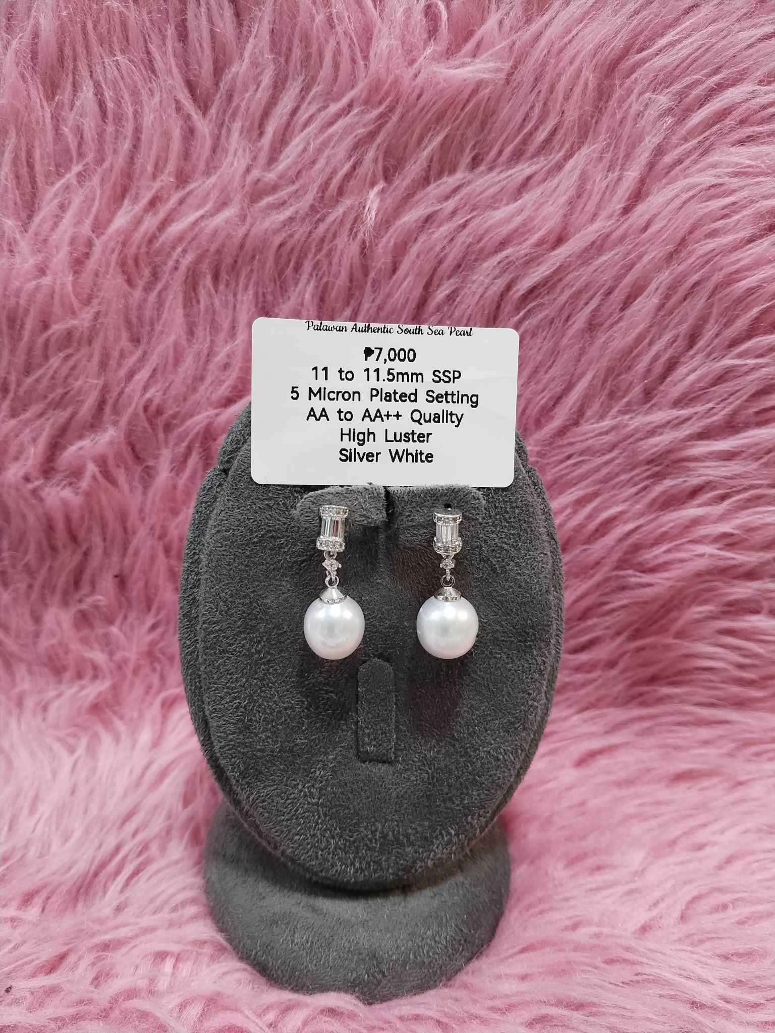 11 to 11.5mm Authentic Silver White South Sea Pearl Set in 5 Micron Settings