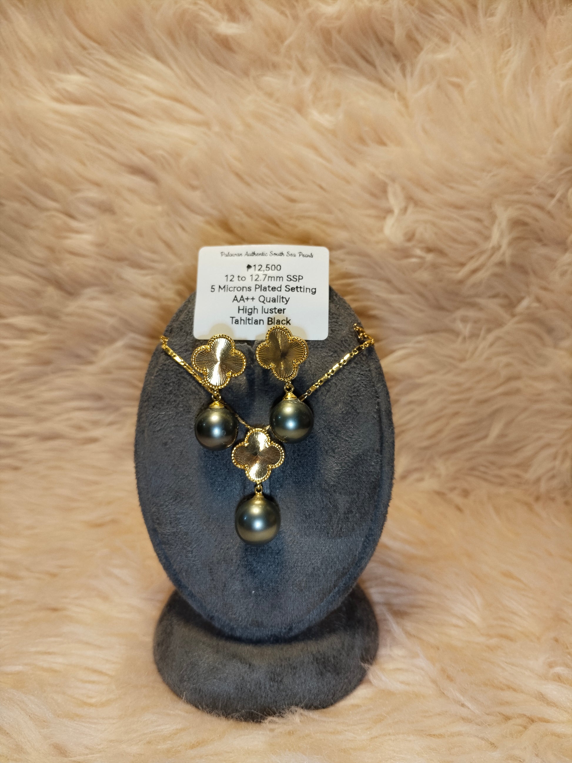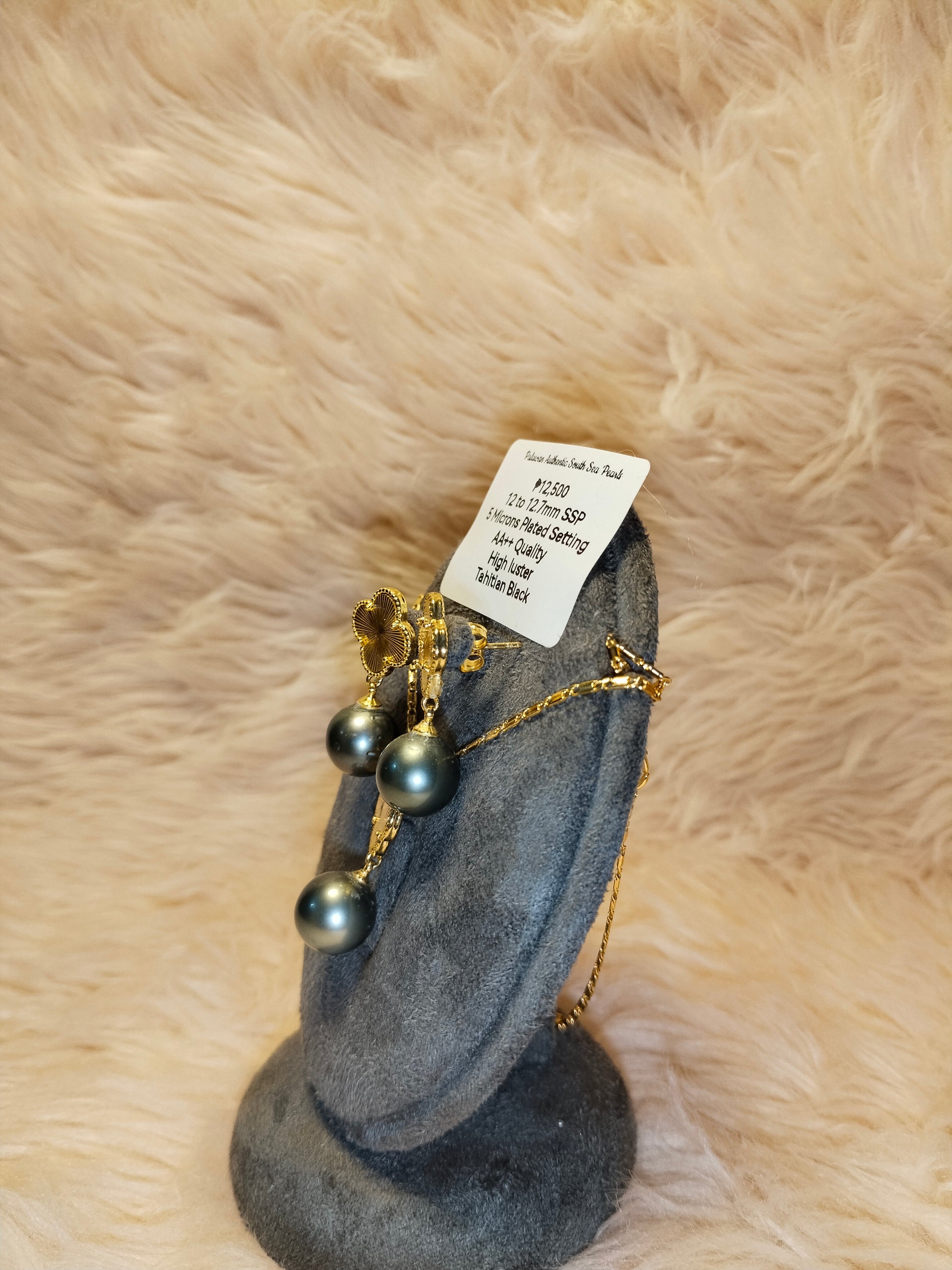 12 to 12.7mm Authentic Tahitian Black Color South Sea Pearl Set in 5 Micron Settings
