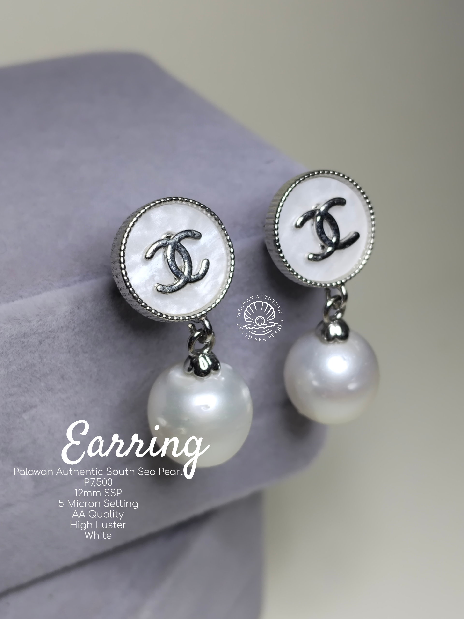 12mm Authentic South Sea Pearls White Special Design Earrings Set in 5 Microns Settings