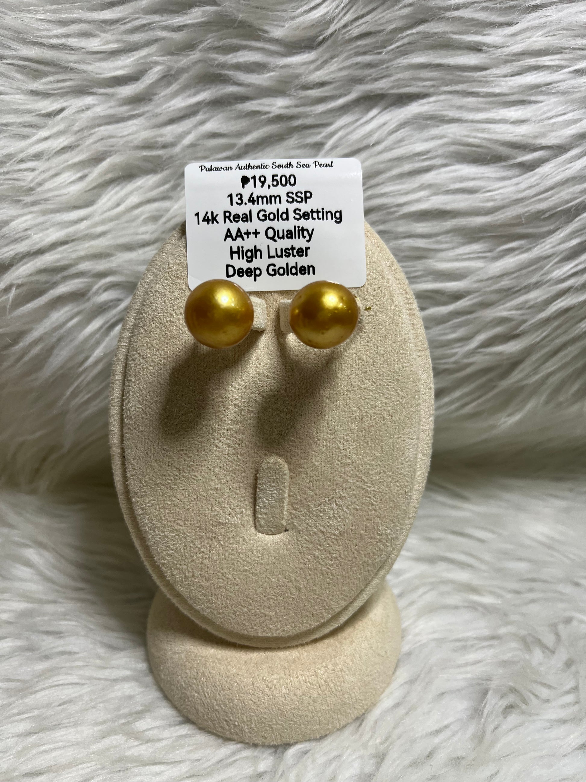 New Arrival! 13.4mm Authentic Deep Golden South Sea Pearl Earrings in 14k Real Gold Settings