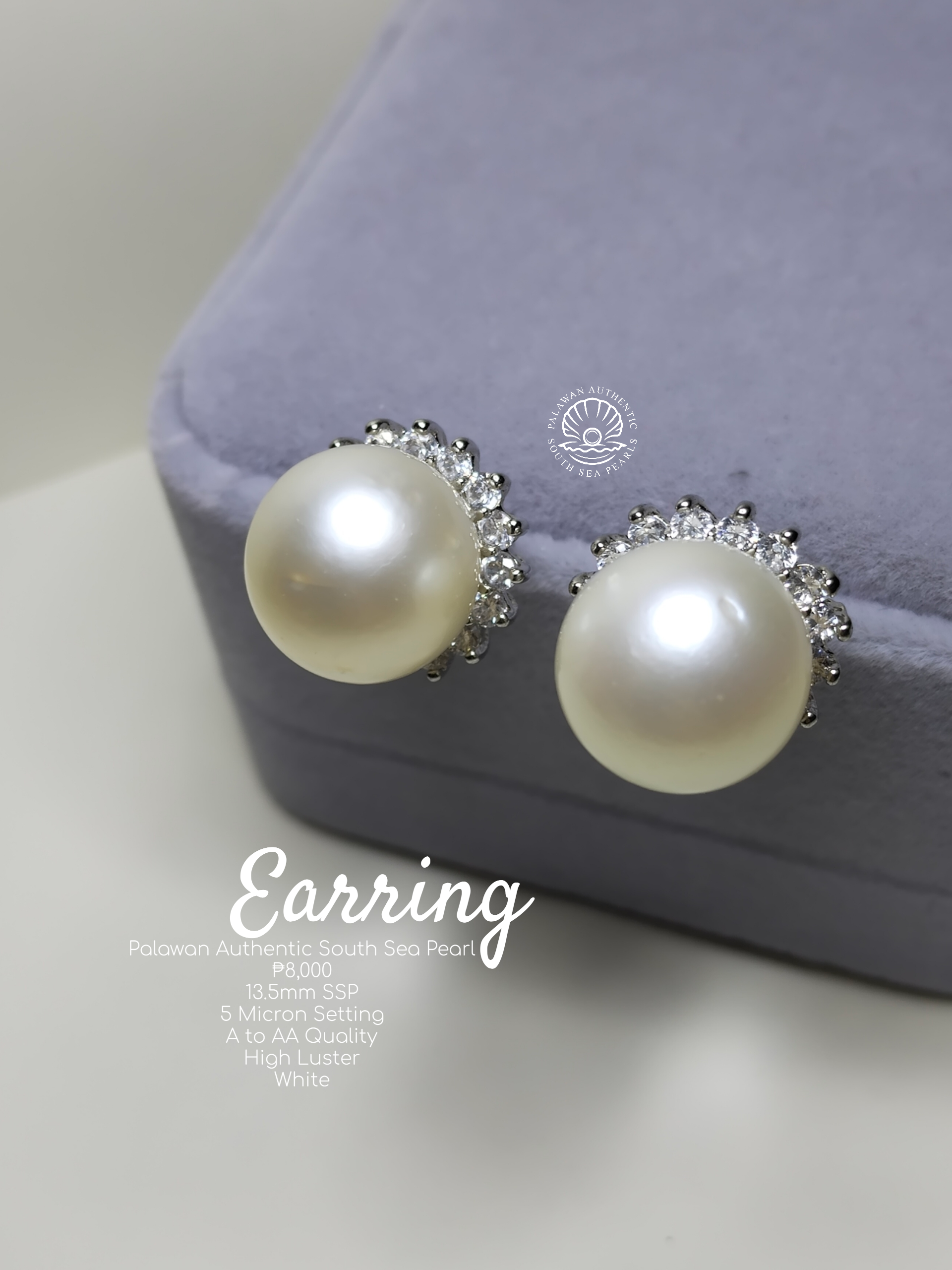 13.5mm Authentic White South Sea Pearls in 5 Micron Plated Settings