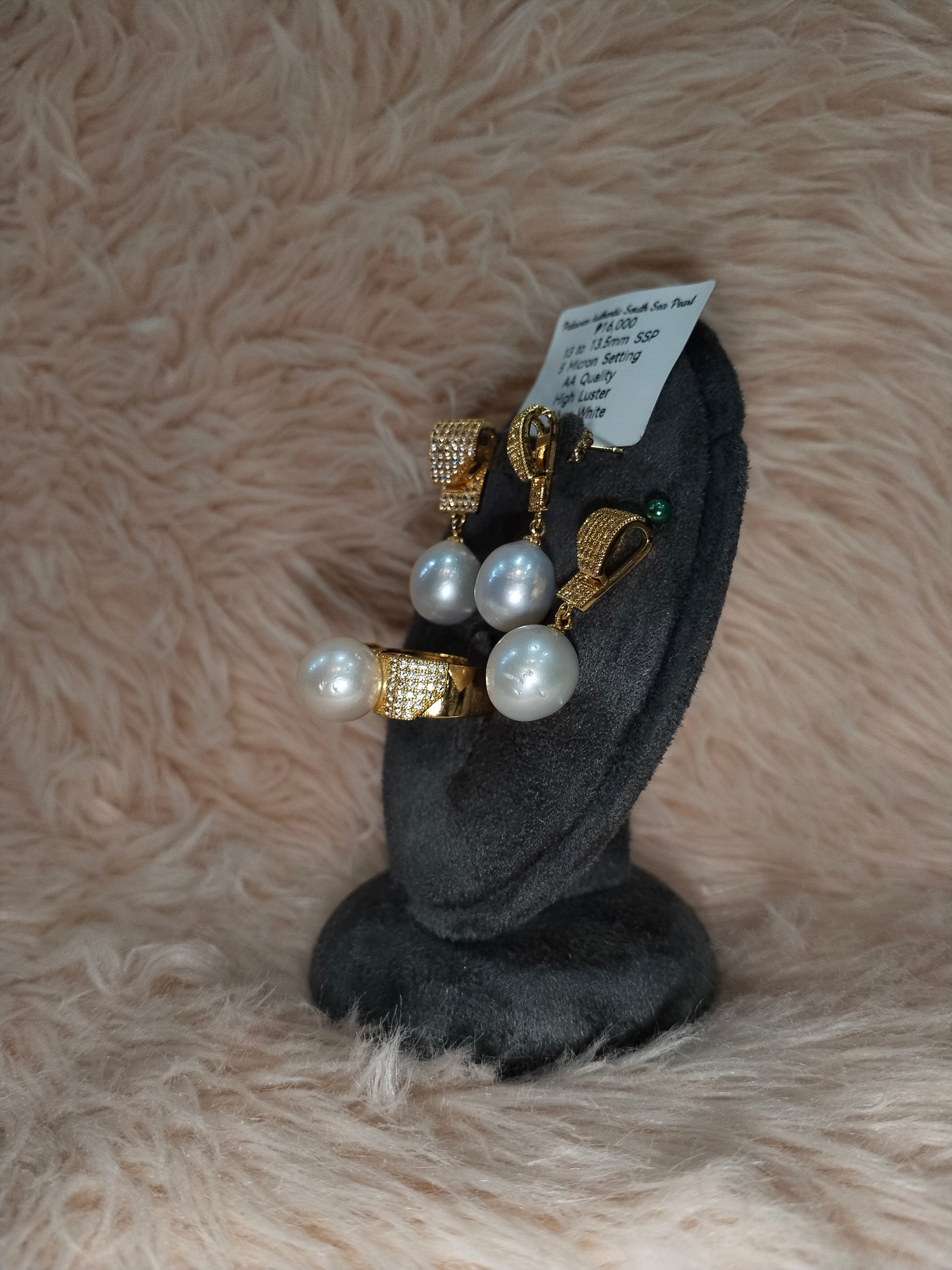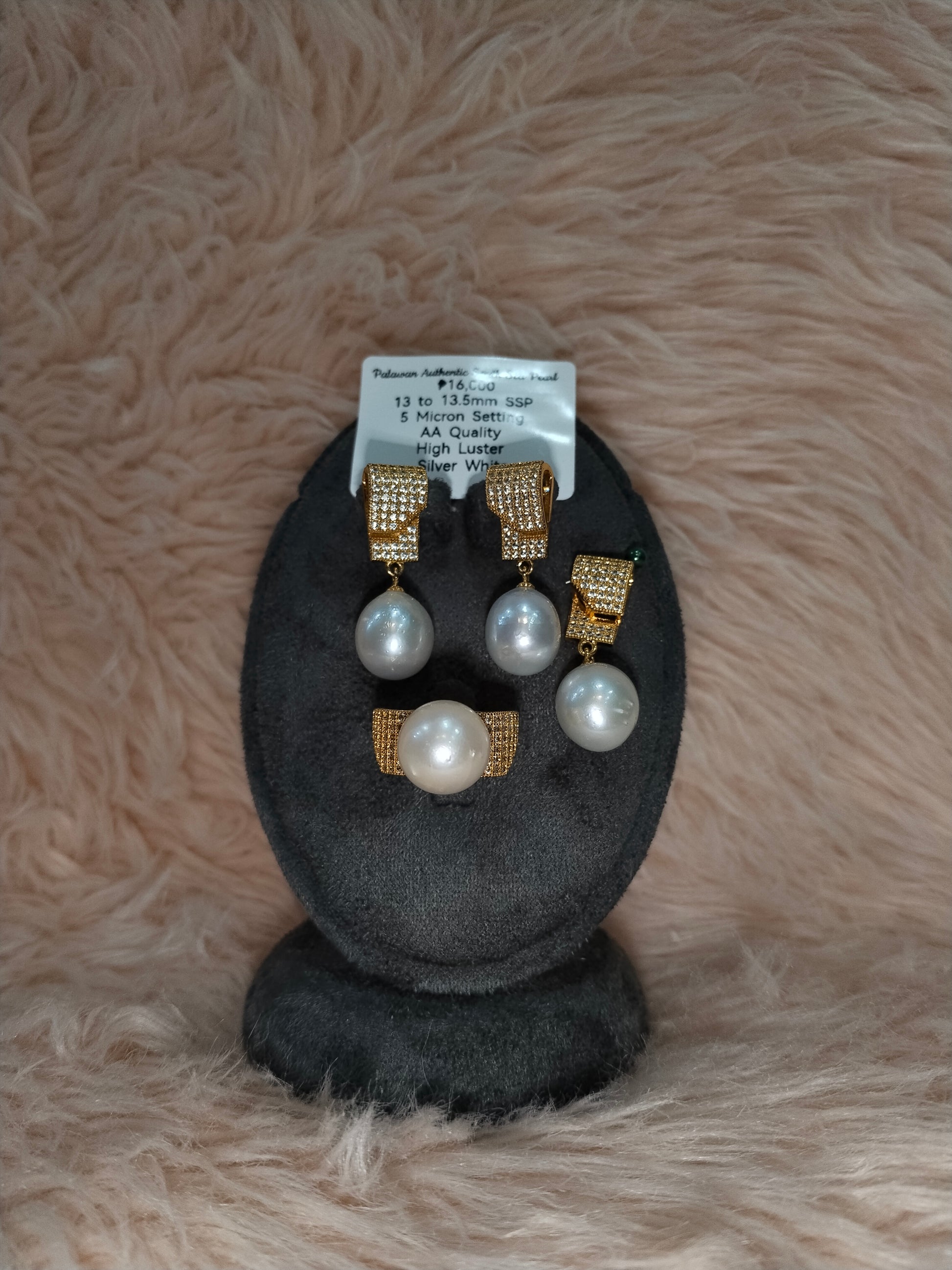 13 to 13.5mm Authentic Silver White Color South Sea Pearl Set in 5 Micron Settings