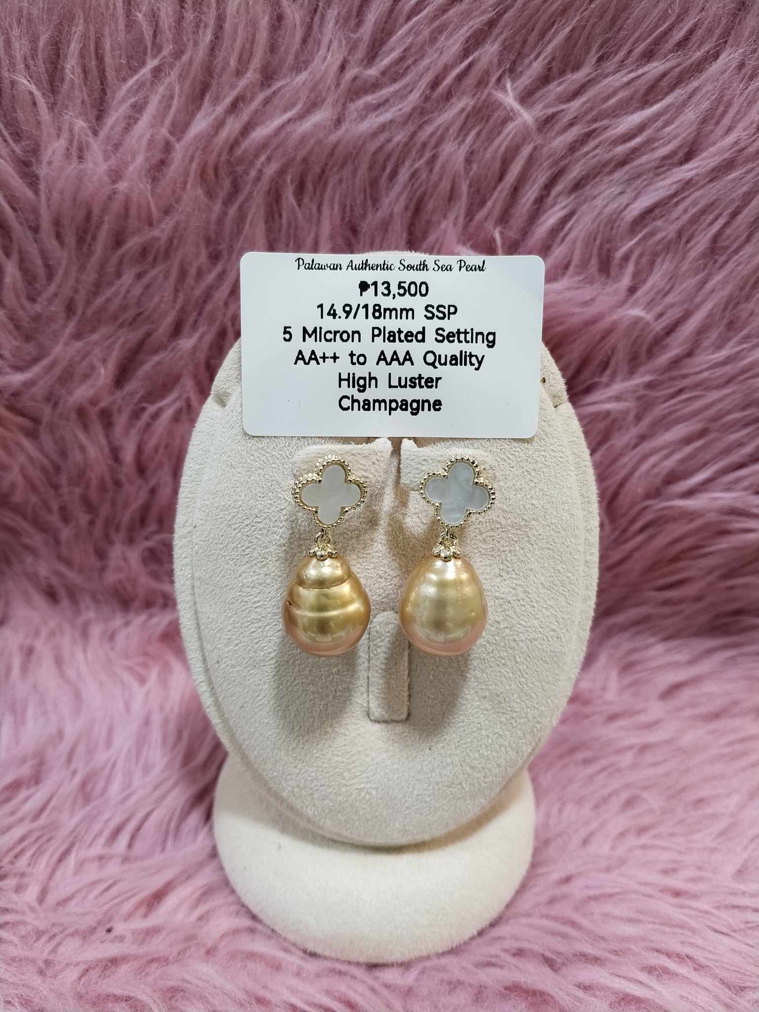 14.9 to 18mm Authentic Champagne Color South Sea Pearl Set in 5 Micron Settings