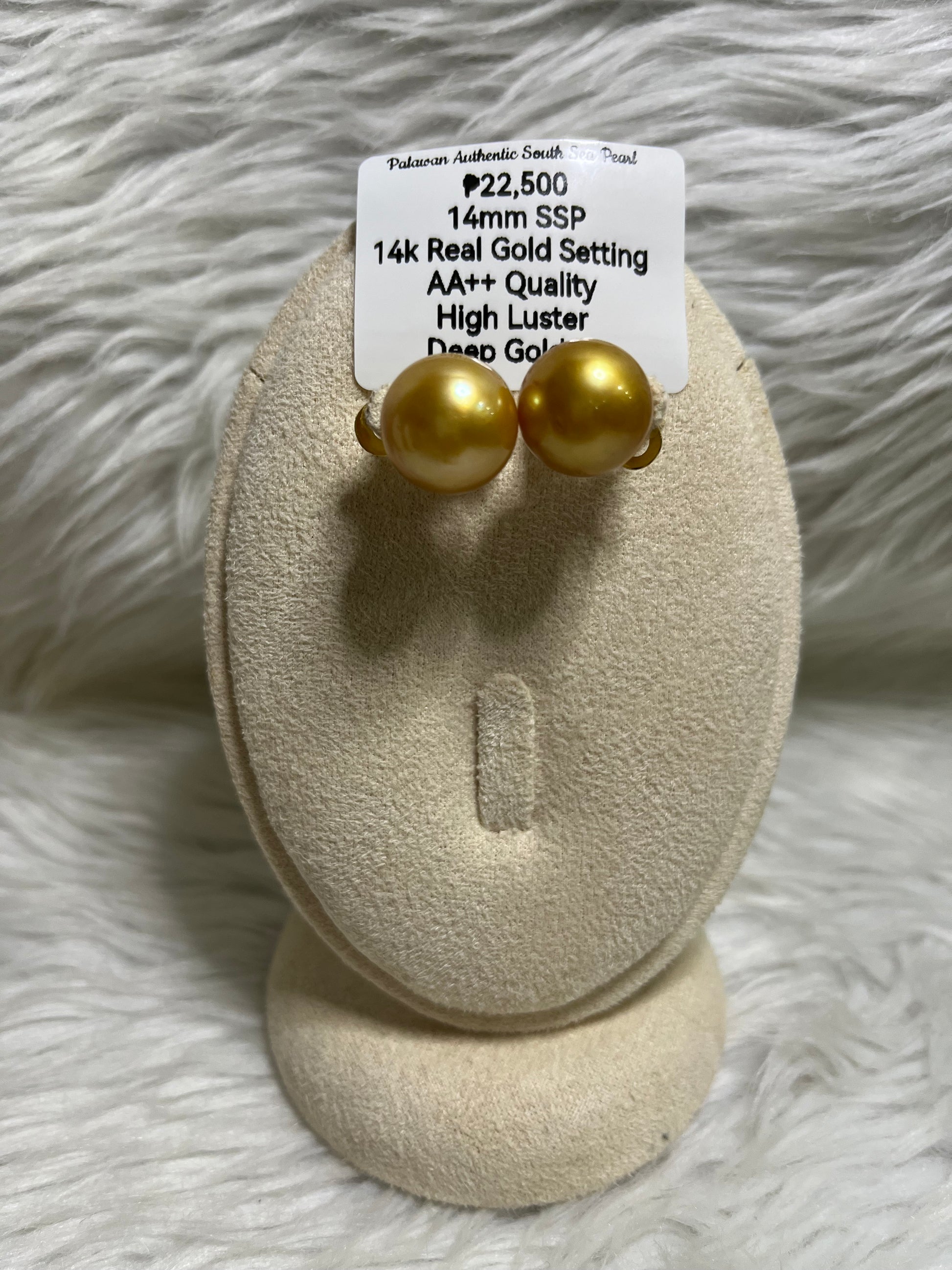 New Arrival! 14mm Authentic Deep Golden South Sea Pearl Earrings in 14k Real Gold Settings