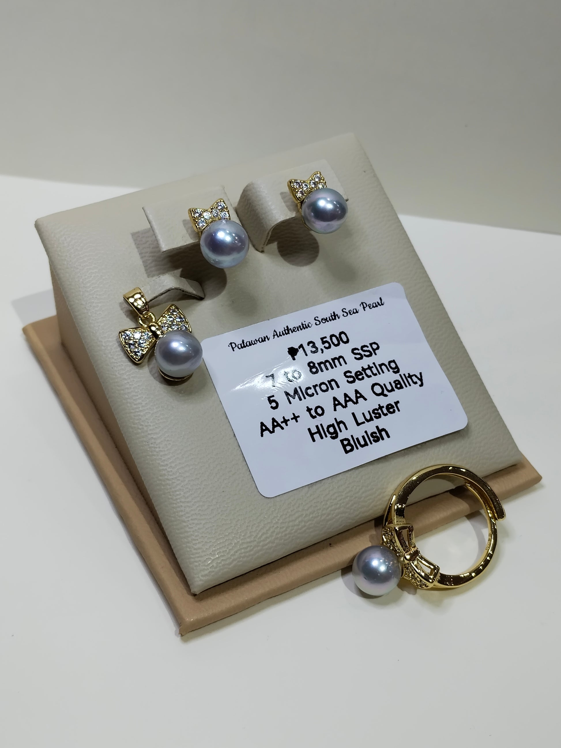 7 to 8mm Authentic Bluish Color South Sea Pearl Set in 5 Micron Settings