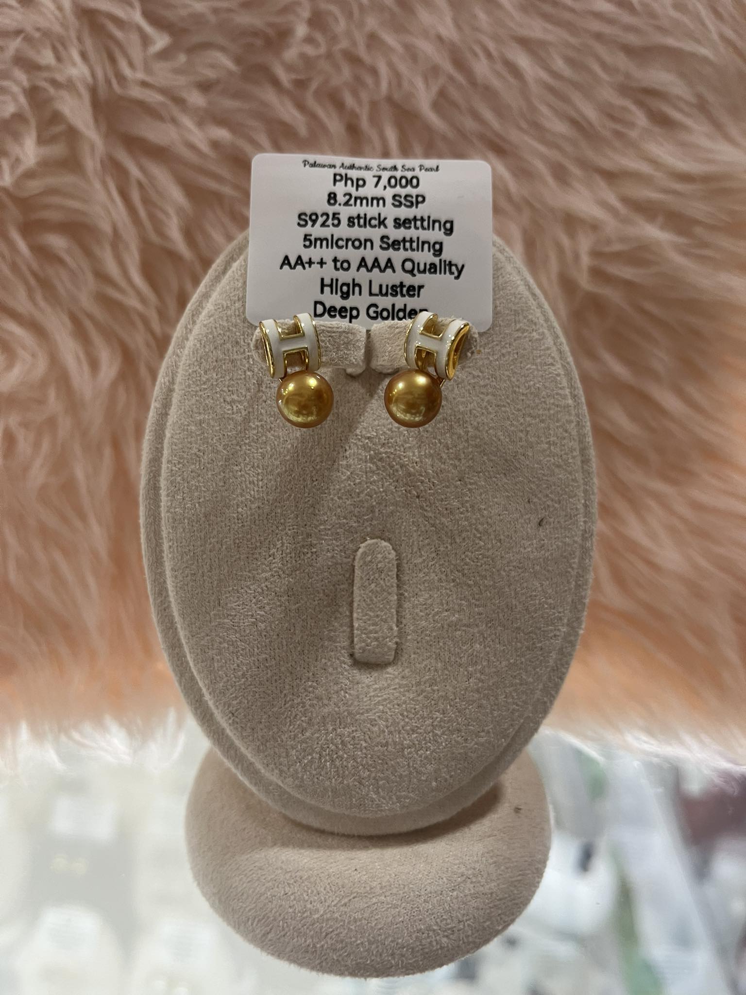 8.2mm Authentic Deep Golden Color South Sea Pearl Set in 5 Micron Settings