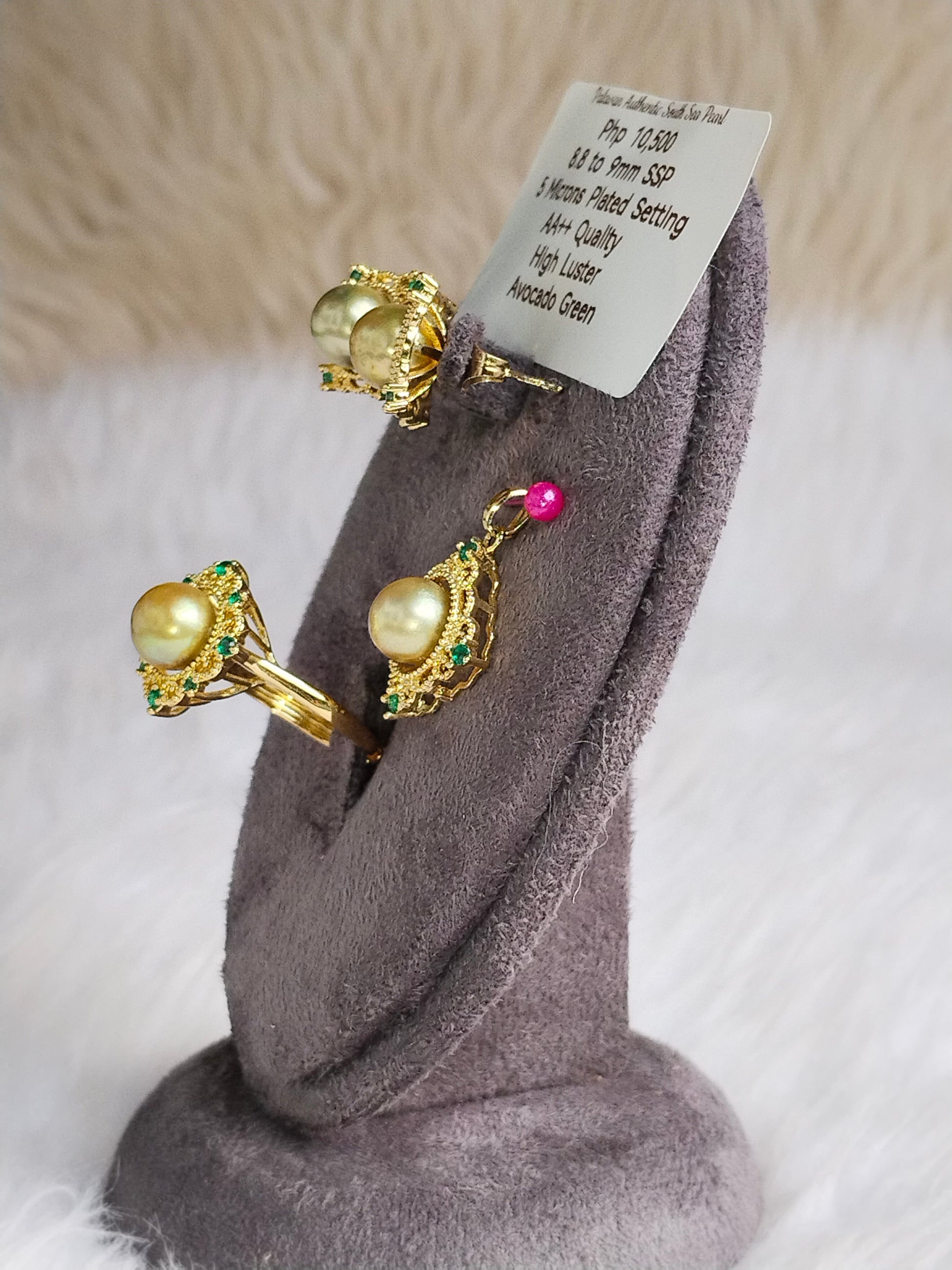 8.8 to 9mm Authentic Avocado Green Color South Sea Pearl Set in 5 Micron Settings