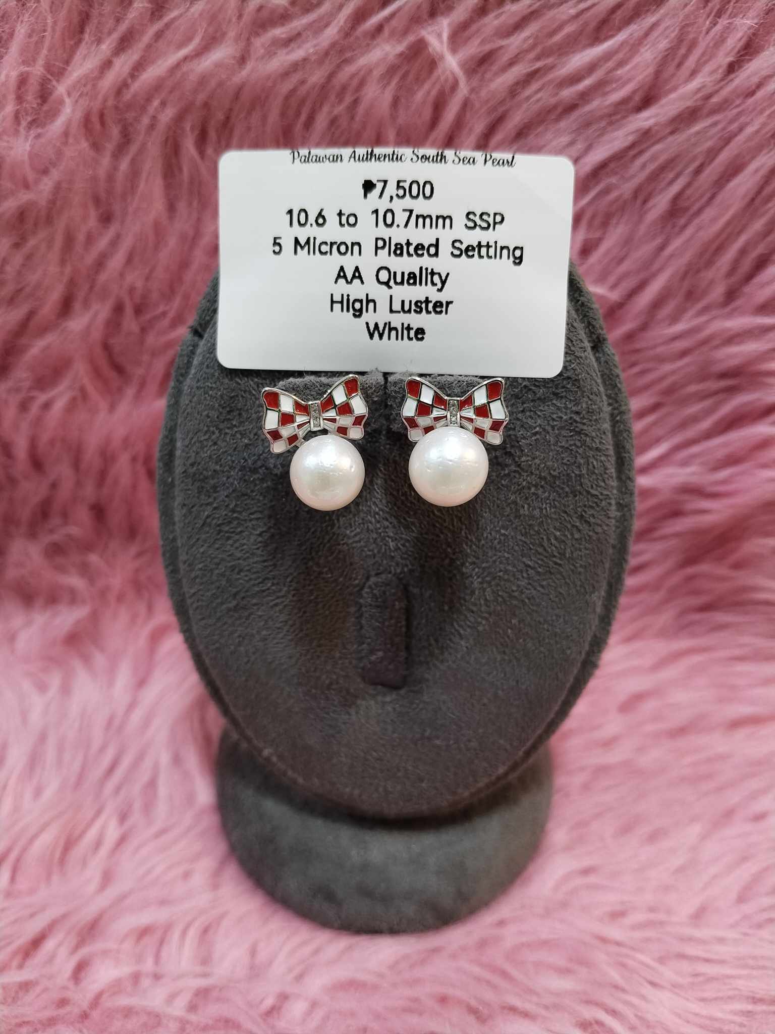 10.6mm to 10.7mm Authentic White South Sea Pearls Earrings in 5 Microns Settings
