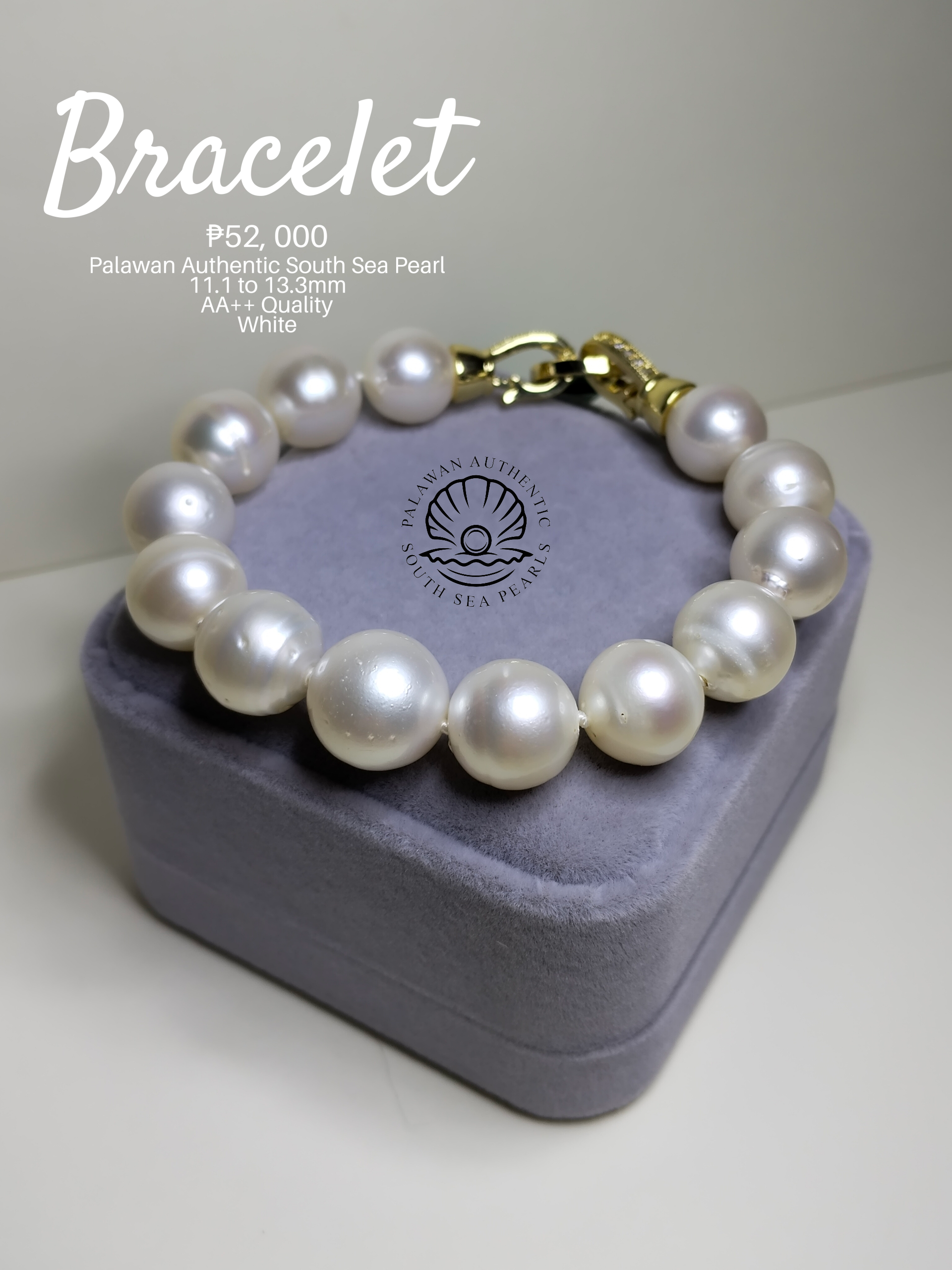 New Arrival! 11.1 to 13.3mm Palawan Authentic White South Sea Pearl Bracelet in 5 Micron Lock Settings