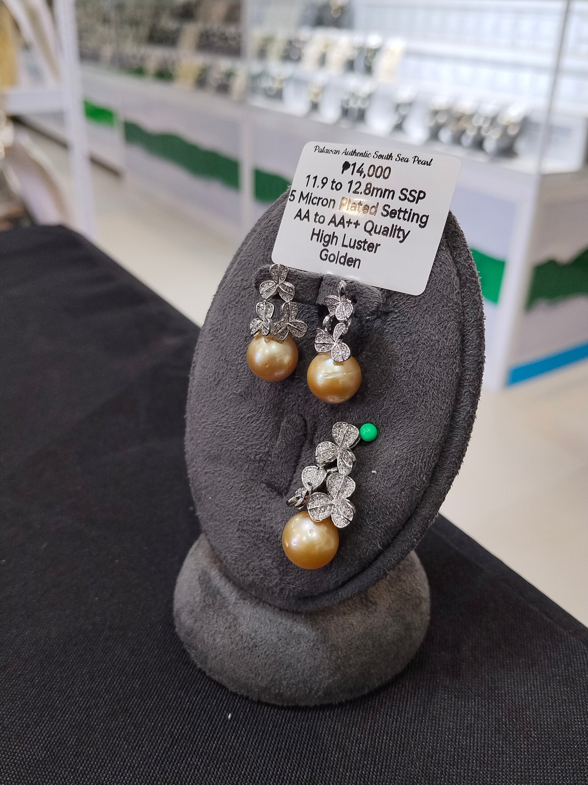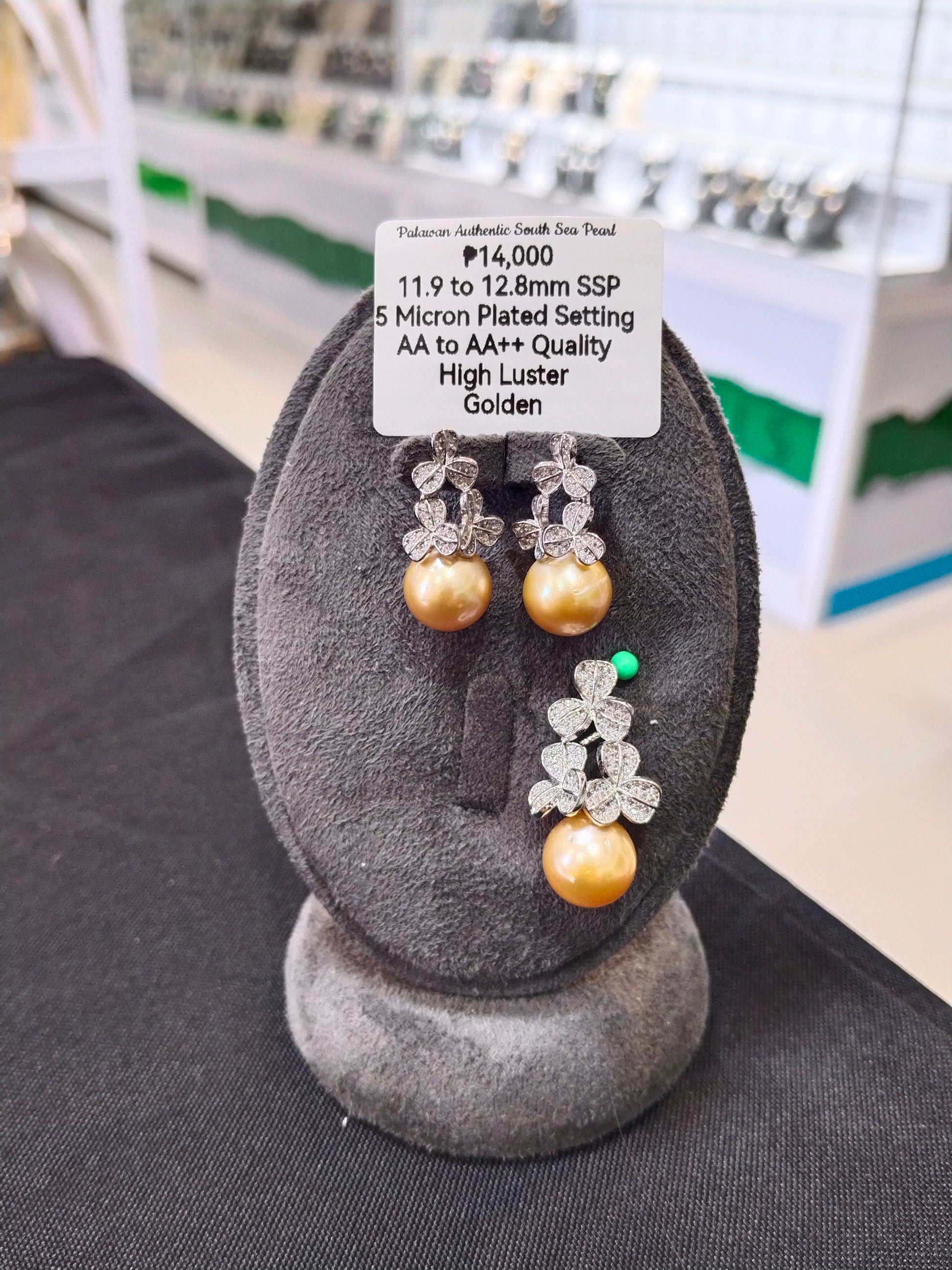 11.9mm to 12.8mm Authentic Golden Color South Sea Pearl Set in 5 Micron Setting