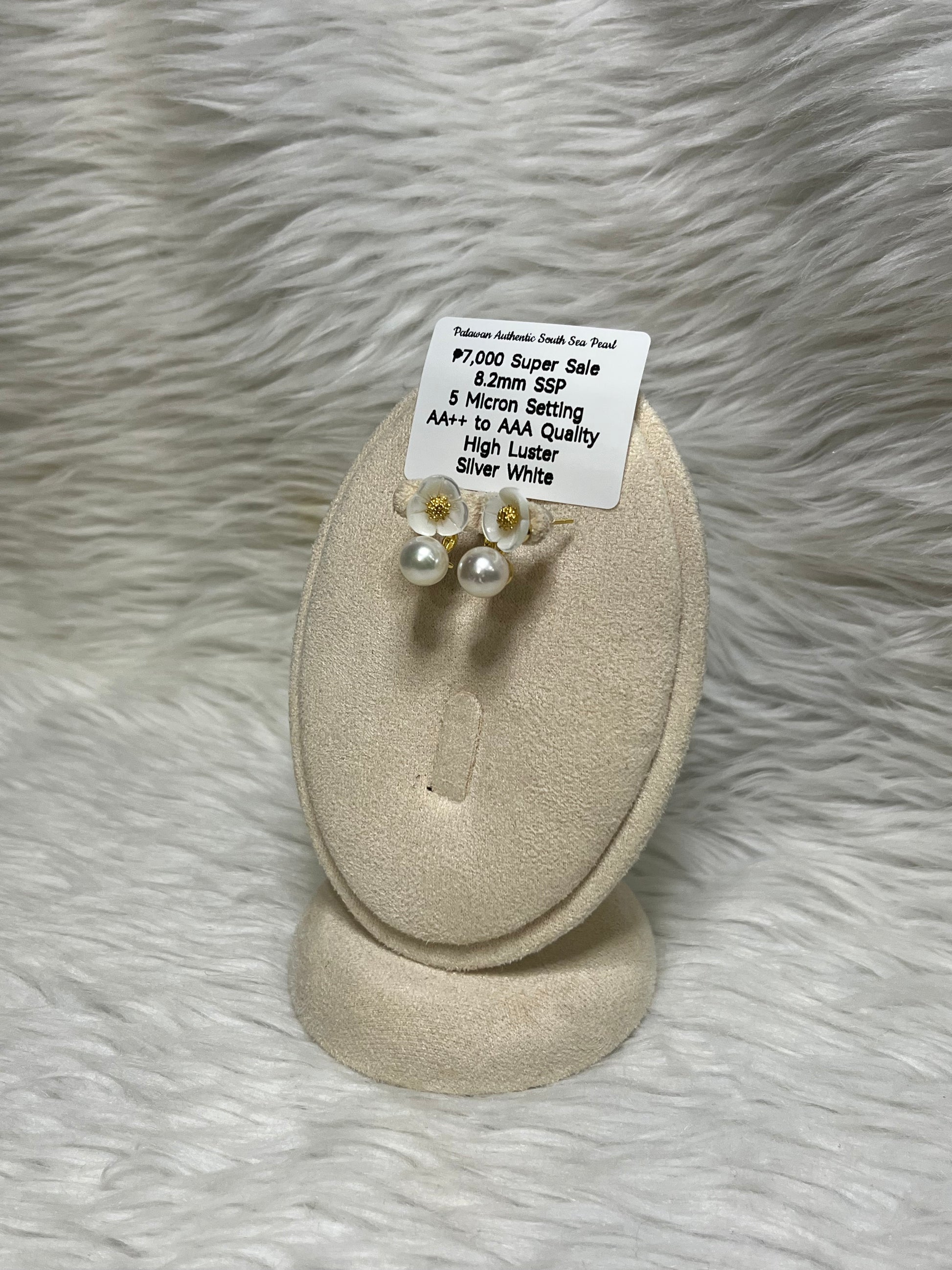 New Arrival! 8.2mm Authentic Silver White South Sea Pearl Earring in 5 Micron Setting