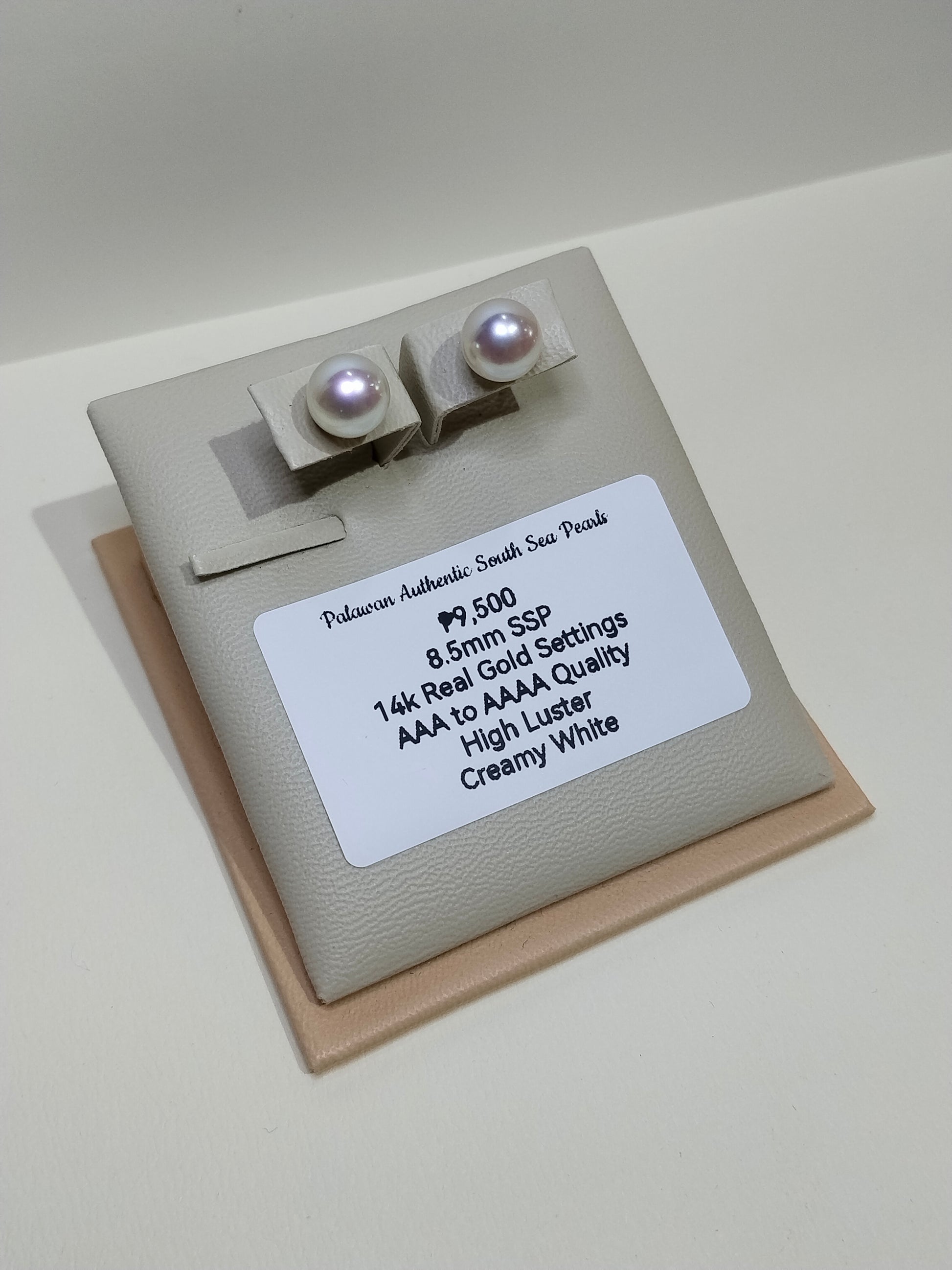New Arrival! 8.5mm Palawan Authentic Creamy White Color South Sea Pearl Earrings in 14k Real Gold Settings