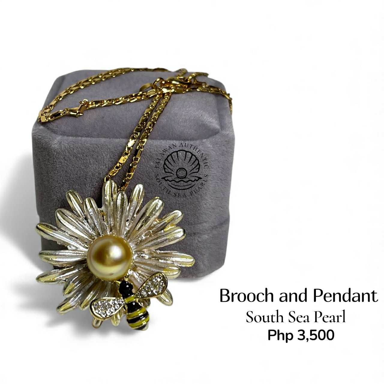 Palawan Authentic South Sea Pearl Brooch Pin in 5 Micron Plated Settings